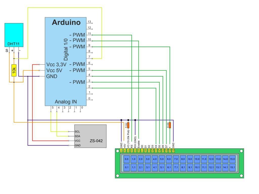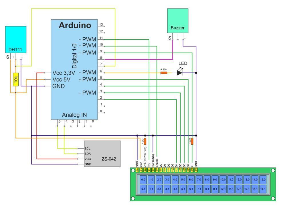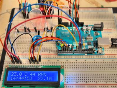 Der Arduino eignet sich bestens, Signale von Sensoren auszuwerten und auf der Grundlage der erhaltenen Ergebnisse unmittelbar Ereignisse auszulösen. Hier bietet sich beispielsweise ein Temperatur- und Feuchtesensor an, der zusammen mit einem Uhrenmodul ein Überwachungssystem für Räume bilden kann.