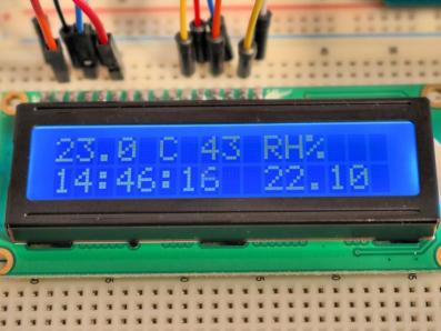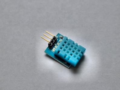 Der digital arbeitende Sensor ›DHT11‹ besitzt je nach Version drei oder vier Anschlüsse und kann Temperaturen im Bereich von 0 bis 50 Grad Celsius sowie die Luftfeuchtigkeit im Bereich von 20 bis 90 Prozent erfassen. Die Daten werden auf der LCD-Anzeige angezeigt.