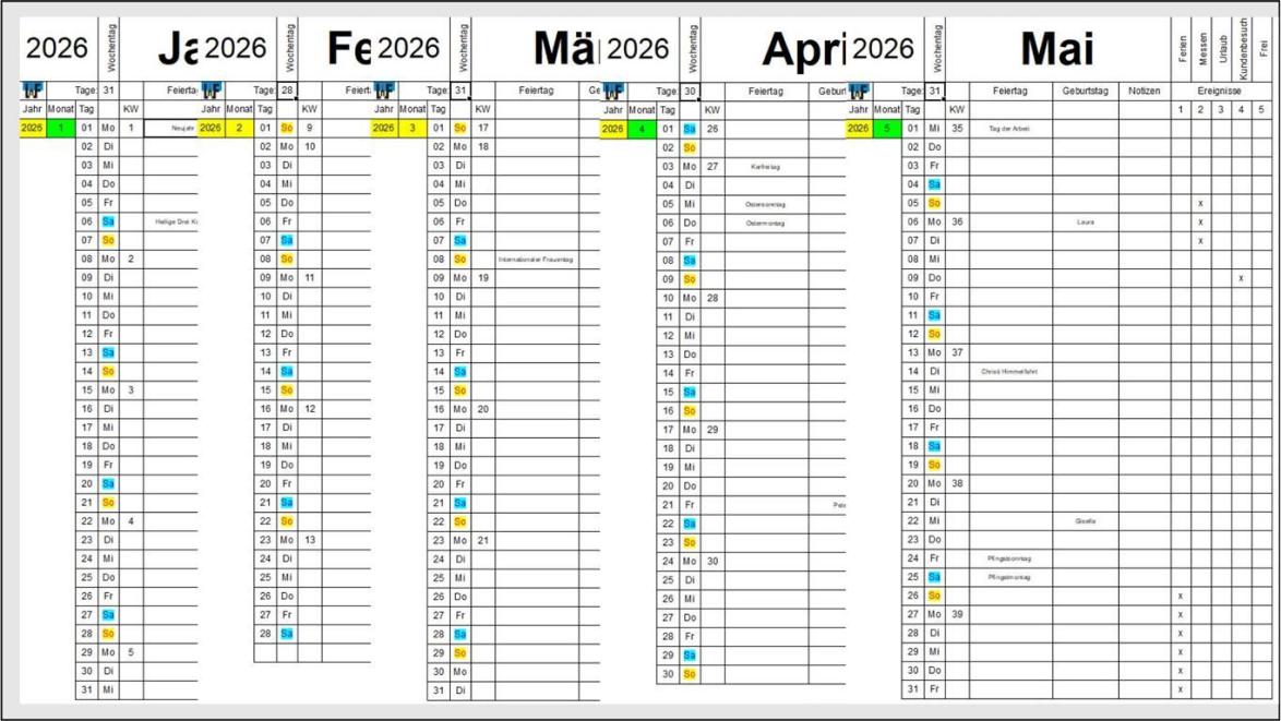 Das Tabellenkalkulationsprogramm Microsoft Excel erfreut sich einer großen Verbreitung, weshalb es praktisch eine monopolartige Stellung einnehmen konnte. Doch hat dies mittlerweile dazu geführt, dass es nicht mehr mit dem großen Ehrgeiz wie zur Anfangszeit weiterentwickelt wurde, weshalb sich so manche Aufgabe nur umständlich mit den vorhandenen Funktionen umsetzen lässt. Dies beweist Planmaker vom deutschen Unternehmen Softmaker, mit dem die Umsetzung eines ewigen Kalenders weit einfacher gelingt.