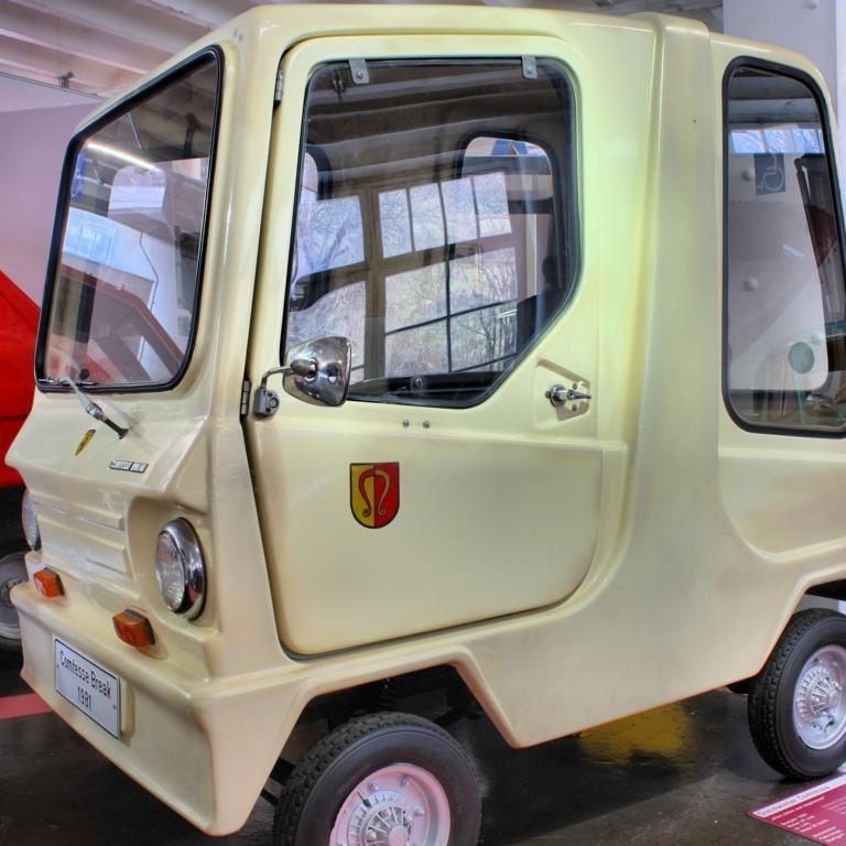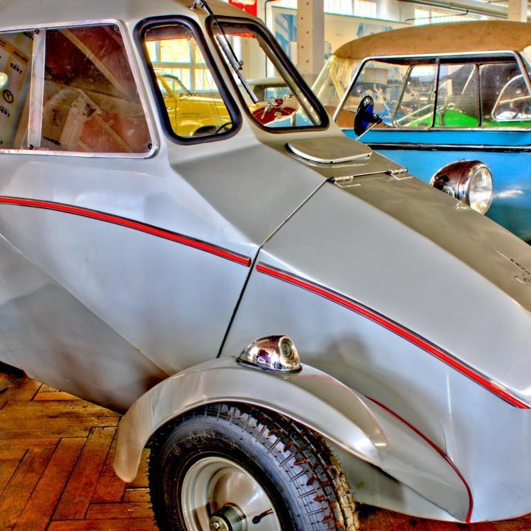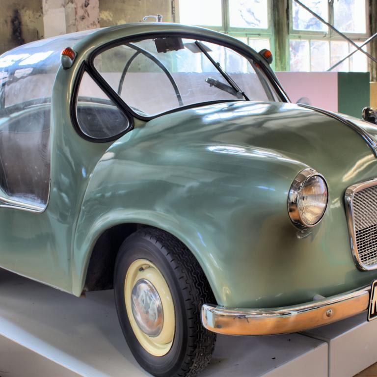 Kriege gehen nie ohne Leid zu Ende. Auch nach dem Zweiten Weltkrieg galt es, den ungezählten kriegsgeschädigten Menschen wieder ein unabhängiges Leben zu ermöglichen. Kein Wunder, dass man im dritten Stock des Museums auch auf dreirädrige Fahrzeuge stößt, die speziell für beinamputierte Soldaten gebaut wurden. „Modernere“ Modelle boten sogar eine geschlossene Karosserie als Wetterschutz. Schon damals gab es für diesen Kundenkreis auch Elektrowagen, zu denen sogar eine Ladestation mitgeliefert wurde.