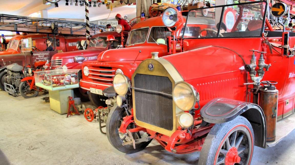 Auch ein Audi 920 von 1939 zieht die Aufmerksamkeit der Besucher auf sich. Ebenso wie die zahlreichen Feuerwehrfahrzeuge, die sich präsentieren, als könnten sie sofort zum Einsatz aufbrechen. Es gibt sogar ein Motorrad zu sehen, dessen Beiwagen nicht für Mitfahrer gedacht ist. Vielmehr ist hier eine Wasserpumpe untergebracht, um auch in unwegsamen Gelände Wasser zur Flammenbekämpfung heranzupumpen. Mit einer Reihe historischer Schutzhelme wird diese Sammlung abgerundet.