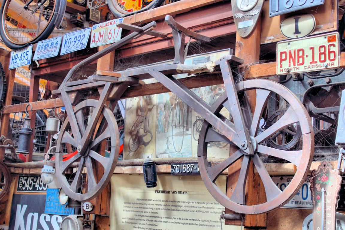 Es schadet auch nicht, den Blick in die Höhe zu richten: Aufgehängt an einem Geländer, lassen sich sowohl ein Original-Hochrad aus dem Jahre 1870, sowie ein Laufrad von 1840 entdecken! Wer seinen Blick schweifen lässt, wird auch ein Jaray-Rad erblicken, das als Trethebelrad in die Geschichte eingegangen ist. Echte Raritäten, die alleine schon den Besuch des Museums lohnen.