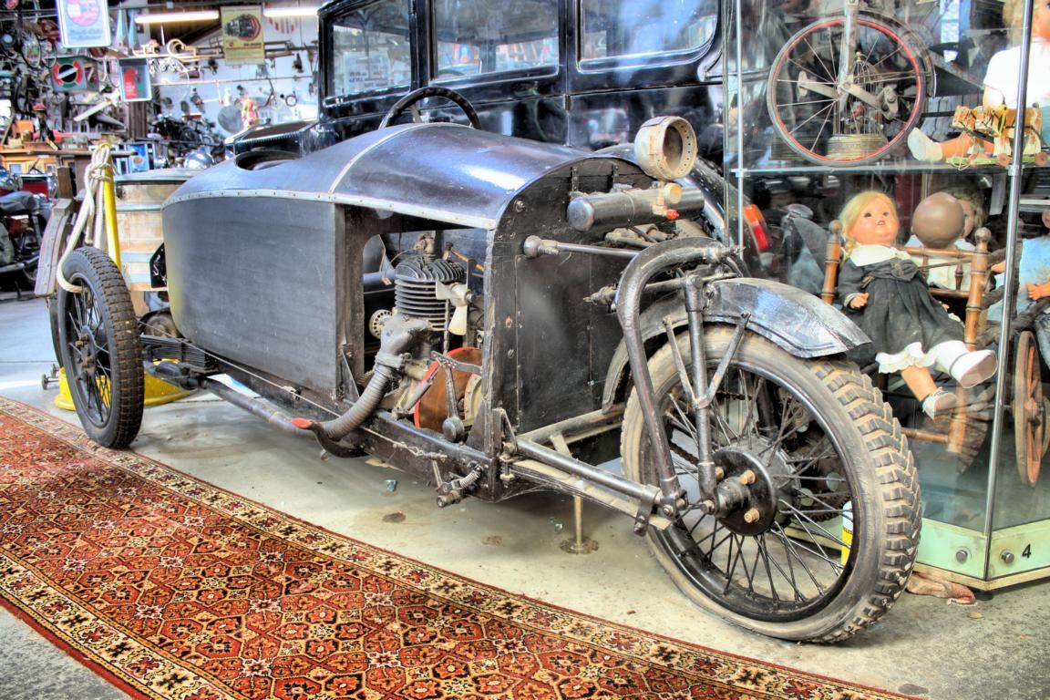 Mit dem Einspurauto von Mauser gibt es im Museum ein ganz besonderes Fahrzeug zu sehen. Dieses wurde vom Waffenproduzent Mauser nach dem 1. Weltkrieg gebaut und verfügt über eine Reibscheibenkupplung. Wer sich darunter nichts vorstellen kann, sollte dieses Fahrzeug gezielt aufsuchen und einen Blick in den Motorraum werfen.