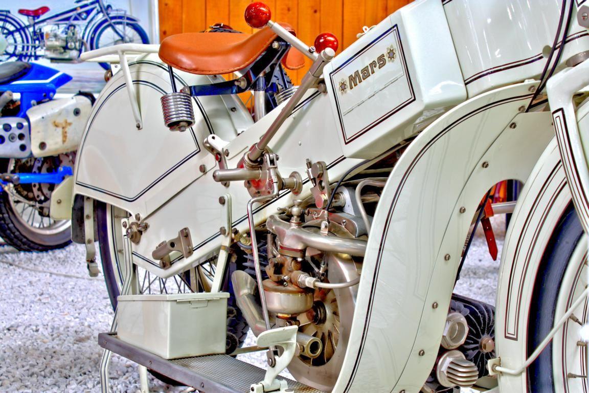 Ganz besondere Schmankerl finden sich natürlich auch unter den vielen Motorrädern in Sinsheim, die, wie kann es anders sein, zum größten Teil voll fahrbereit sind. Darunter ist beispielsweise ein ›Böhmerland‹-Motorrad mit besonders langer Sitzbank für mehrere Personen oder ein Einrad-Motorrad, das ein höchst ungewöhnliches Fortbewegungsmittel darstellt und bereits 1910 gebaut wurde.