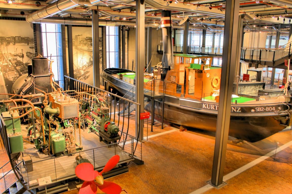 In der Schifffahrtabteilung kann anhand von Modellen sehr schön nachvollzogen werden, wie sich der Schiffbau im Laufe der Zeit verändert hat. Von der Holzkonstruktion über die Vernietung von Eisenblechen bis zum modernen Schiffrumpf, der verschweißt wird, ist alles im Maßstab 1:1 zu sehen. Mittlerweile ist bekannt, dass die Titanic nicht zuletzt wegen ihrer schlechten Niete, die aus mangelhaftem Material hergestellt wurden, so schnell gesunken ist. Die Köpfe dieser Niete sind in dem kalten Wasser beim Zusammenprall mit dem Eisberg reihenweise abgesprungen, weshalb die Metallplatten keinen Halt mehr hatten und so das Wasser den Schiffsbauch flutete.