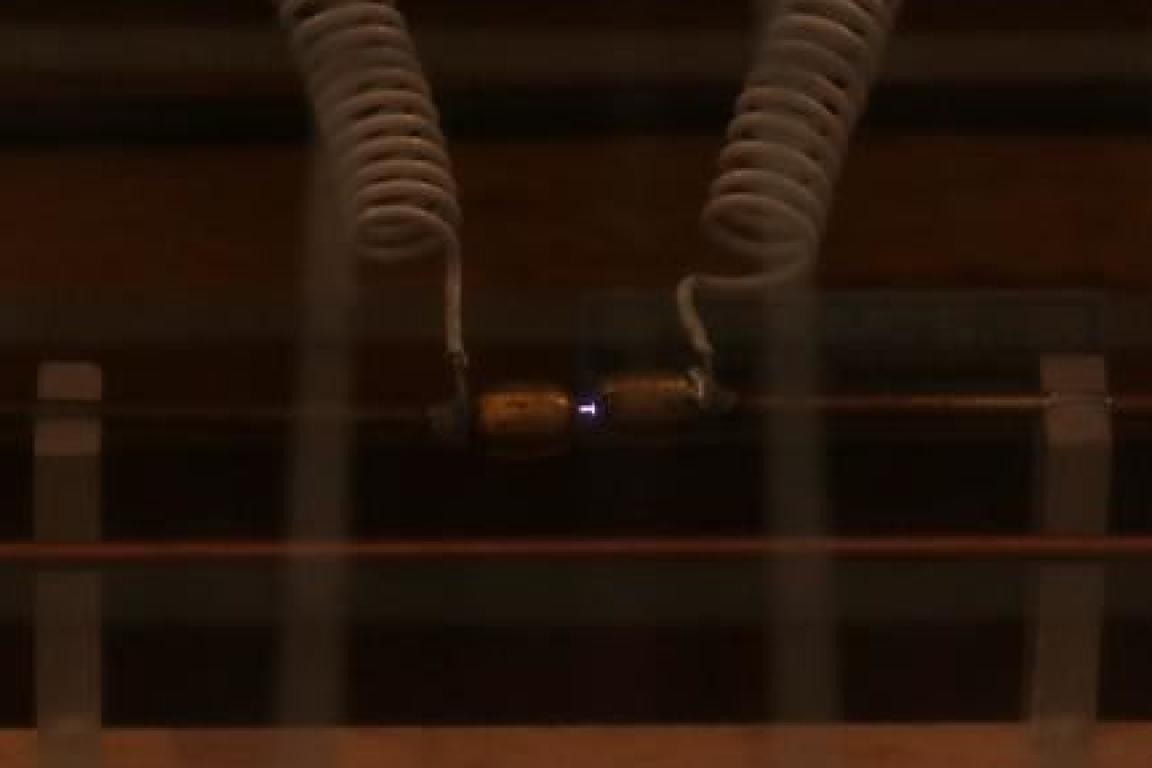 Diese Funken erzeugten elektromagnetische Funkwellen, die sich wellenförmig ausbreiten und interessanterweise dazu führen, dass am offenen Ende eines in einigem Abstand befindlichen Drahtrings ebenfalls Funken entstehen, obwohl dieser Ring nicht mit dem Experimentieraufbau verbunden ist.