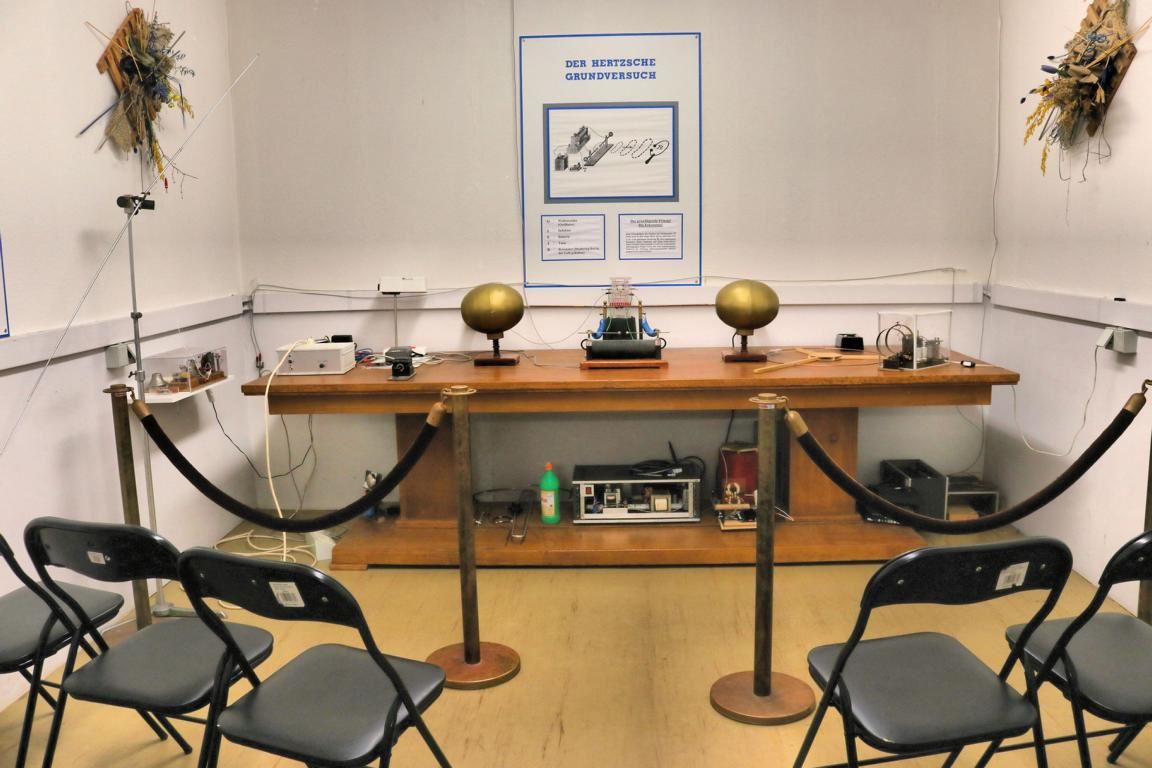 Das Funktechnikmuseum begnügt sich jedoch nicht, nur interessante Sendetechnik sowie wichtiges Drumherum zu präsentieren, sondern gewährt in einem Experimentierlabor auch exklusive Einblicke in die Gedankenwelt von Heinrich Hertz, dem Entdecker der Radiowellen. Damit diese Experimente keine Störungen in den elektronischen Geräten der Einwohner von Königs Wusterhausen hervorrufen, ist dieser Raum abgeschirmt, sodass dieser als faradayscher Käfig wirkt.