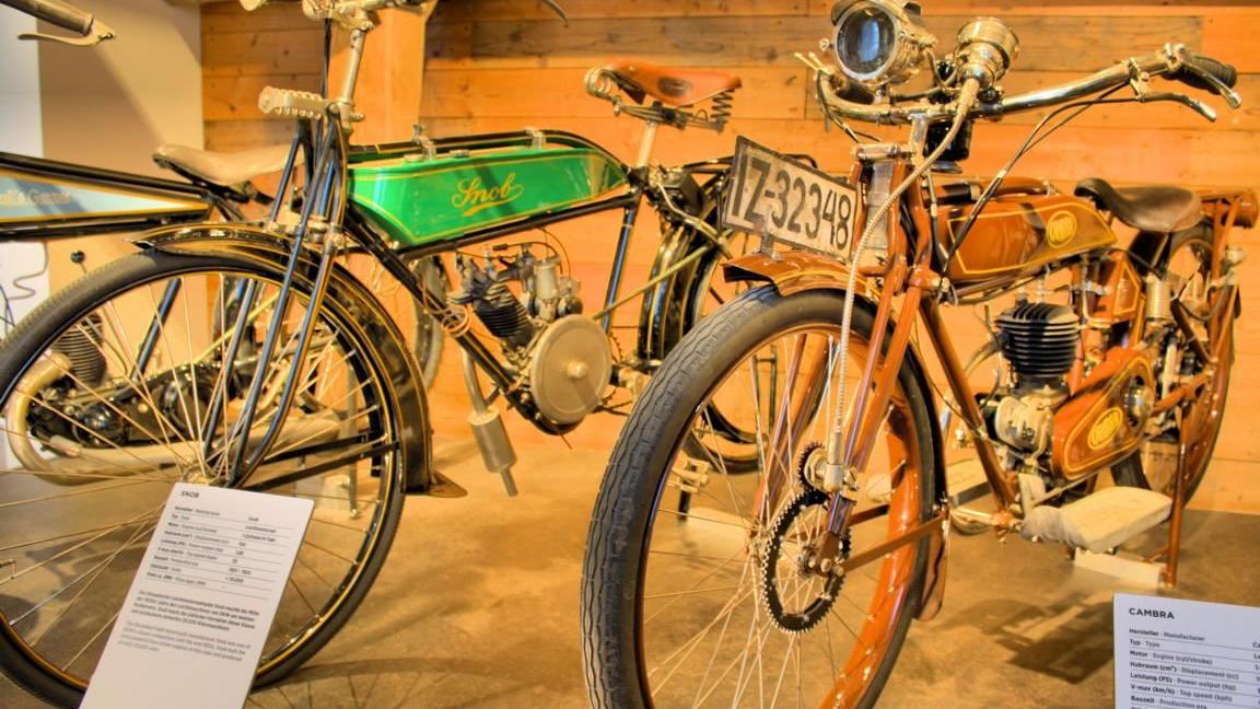 Ein ganz besonderes Schmankerl ist das ›Motorrad‹ von Hildebrand & Wolfmüller. Dieses von 1894 bis 1896 gebaute zweirädrige Fahrzeug war der Namens-Stammvater für alle Motorräder. Kurios war die Kraftübertragung vom Motor auf die Hinterräder, die mittels einer Pleuelstange erfolgte, was an eine Dampfmaschine oder eine Lokomotive erinnert. Obwohl bereits eine Luftbereifung vorhanden war, wurde dieses Gefährt kein großer Erfolg da es mit der Zuverlässigkeit nicht zum Besten bestellt war.