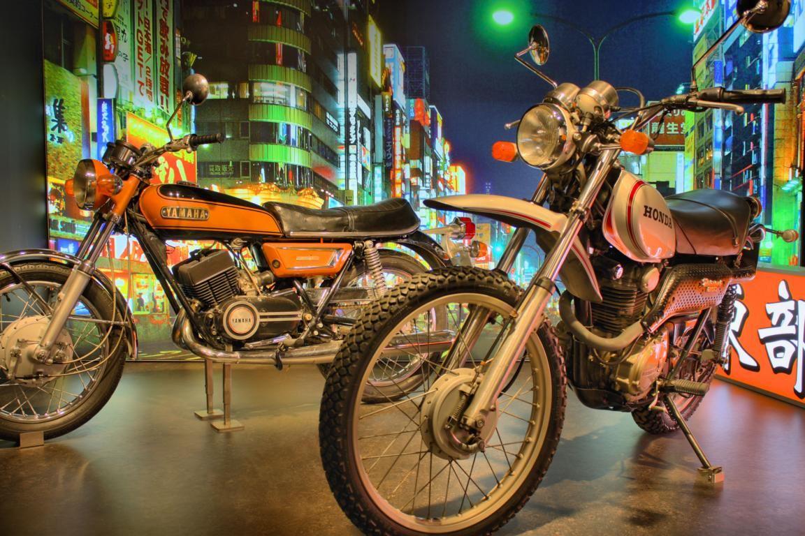 Selbstverständlich kommen auch Liebhaber japanischer Maschinen auf ihre Kosten. Ob ›CB 750 Four‹ von Honda, ›DS 7‹ von Yamaha oder ›Z 900 Super 4‹ von Kawasaki – Kenner kommen ins Schwärmen ob dieser Klassiker aus dem Land der aufgehenden Sonne. Doch die Moderne ist nicht aufzuhalten: Im PS.Speicher gibt es auch die Scorpa/E.M 5.7 zu sehen, eine elektrisch betriebene Trialmaschine, die mit der Leistung eines vergleichbaren Benziners aufwartet.