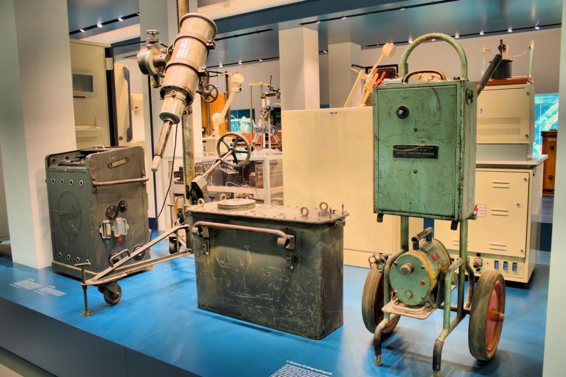 Röntgenstrahlen haben auch dafür gesorgt, dass technische Produkte sicherer wurden. Mit ihnen ist es möglich, Materialfehler zuverlässig zu entdecken. Im Museum gibt es diesbezüglich beispielsweise das Modell ›Aequilux‹ von 1948 zu sehen, mit dem es möglich war, die Schweißnähte von Rohren zu überprüfen.