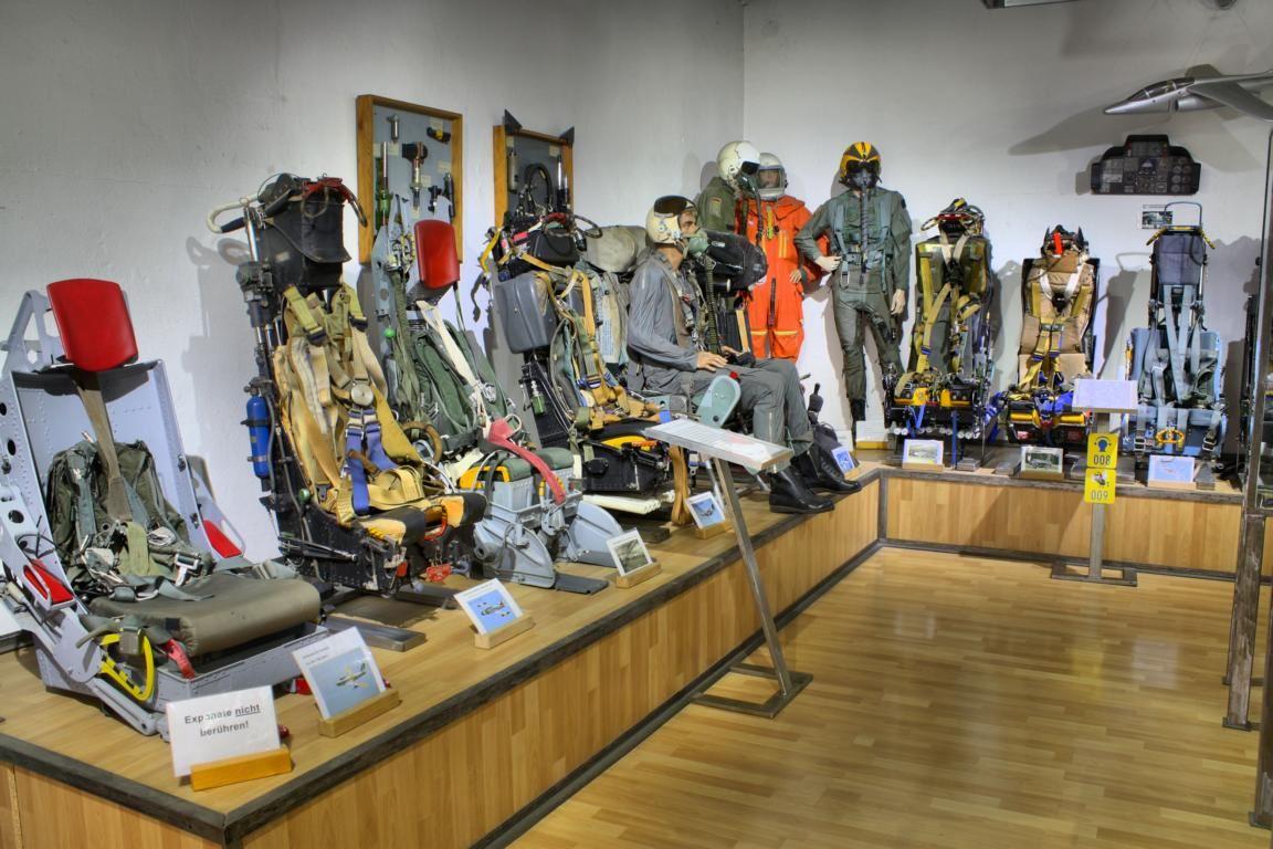 Dem Schleudersitz wird sogar eine eigene kleine Abteilung gewidmet. Hier können die unterschiedlichsten Originale aus wegweisenden Flugzeugtypen bewundert werden: F86 Sabre, T33, F104 Starfighter, MIG21, MIG 29, F4 Phantom oder Senkrechtstarter Harrier – alles was Rang und Namen hat, ist hier vertreten. Ein in Endlosschleife laufendes Video zeigt anschaulich, wie wertvoll Schleudersitze sind und auf welche Weise deren Technik funktioniert.