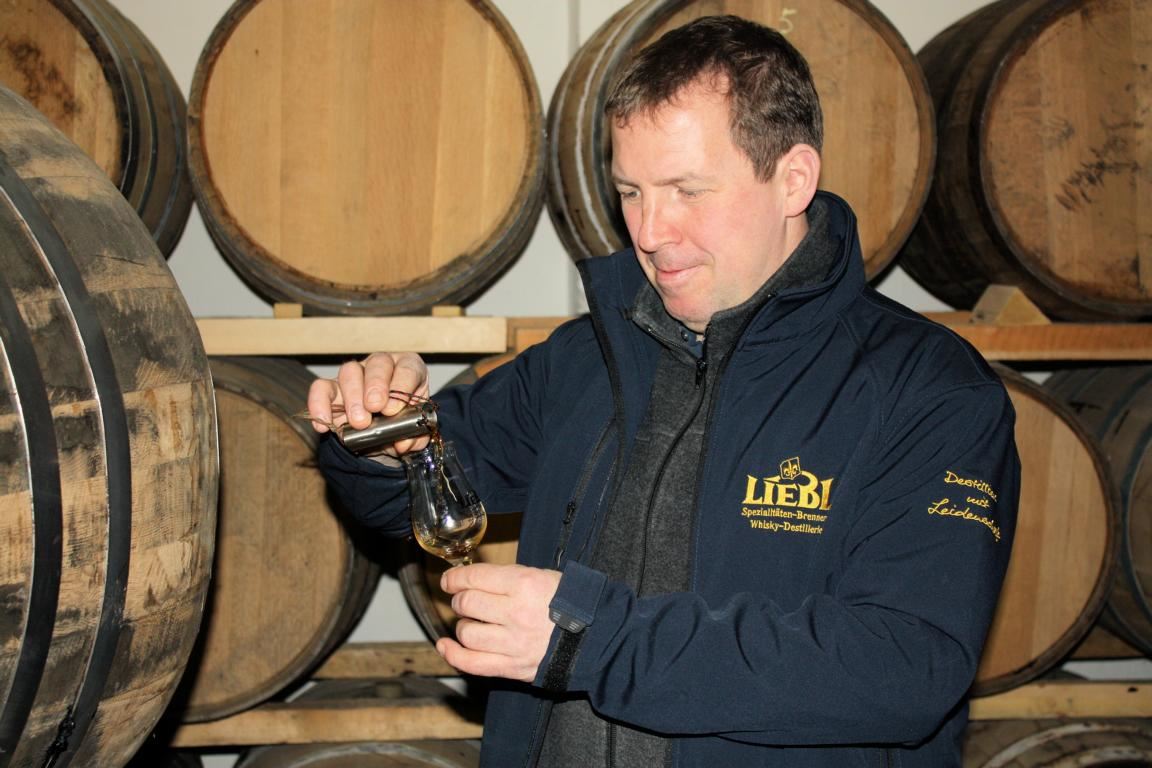 Dem Vorlauf folgt das nutzbare Destillat, in dem eine große Zahl an Aromastoffen enthalten ist. Der sogenannte ›Nachlauf‹ wiederum wird von Liebl nicht verwendet. Er ist bei billigen Schnäpsen die Ursache für so manches Kopfweh. Es kommt also auf die Kunst des Brennmeisters an, die Brenntemperatur exakt zu bestimmen sowie den gefährlichen Vorlauf und den minderwertigen Nachlauf vom Herzstück – dem hochwertigen Teil des Brandes – zu trennen. Nach dem Brand werden die Destillate noch ein bis zwei Jahre gelagert, ehe sie in den Verkauf kommen. Einen guten Schnaps oder Likör zeichnen daher Erfahrung, Können und Geduld aus.