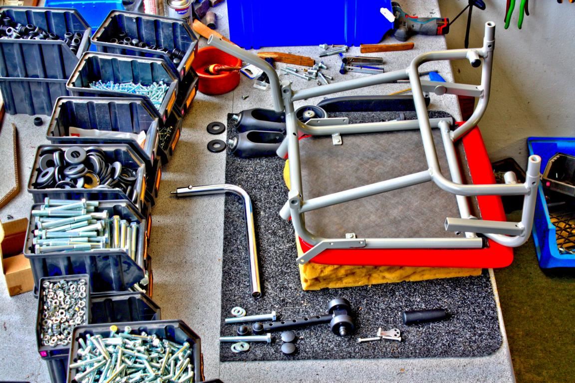 Möglich macht dies ein Modulsystem, aus dem sich für alle Anforderungen der optimale Rollstuhl zusammenstellen lässt. Für den Fall, dass einmal Bauteile zusätzlich anzufertigen sind, weil etwa ein sehr seltener Beckenversatz oder eine ungewöhnliche Körperproportion vorliegt, stehen Facharbeiter parat, die per Drehmaschine, Kreissäge und Schweißapparat die fehlenden Teile in kürzester Zeit entstehen lassen. Egal, ob Griff, Räder, Sitz oder Fußablage, stets wird für jedes Rollstuhlteil robuster Stahl oder hochwertiger Kunststoff verwendet.