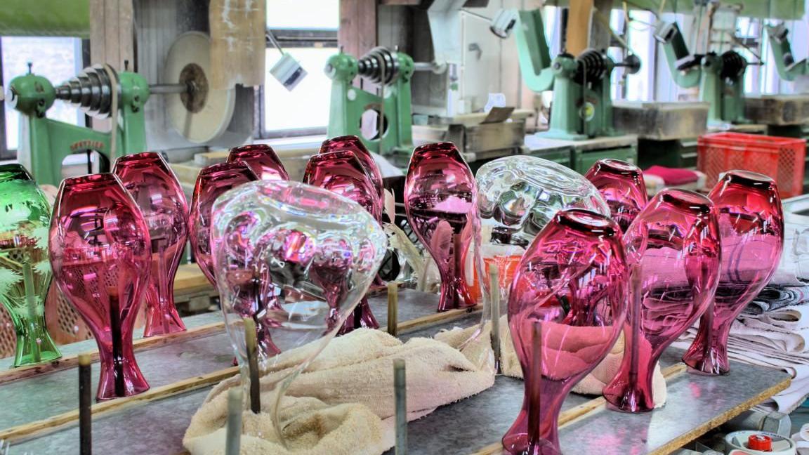 Beispielsweise wird hier die Produktion von sogenannten Überfanggläsern beherrscht. Dies ist eine Technik, bei der mehrere Gläser mit unterschiedlichen Farben kombiniert werden. Mit dieser Technik ist es möglich, gleichmäßige Farbverläufe, leichte Schattierungen sowie wolkige Strukturen zu erzeugen. Der besondere Vorteil dieser Technik ist zudem, dass sich Schliffe im Glas besonders gut hervorheben.