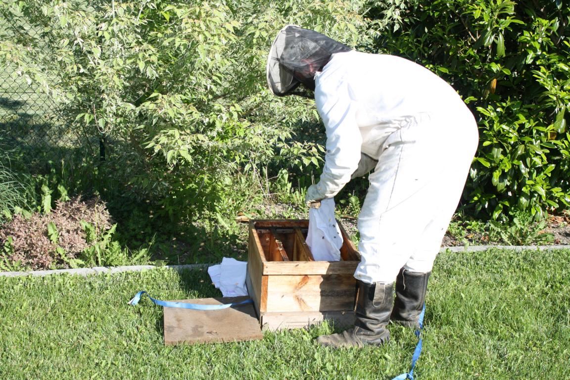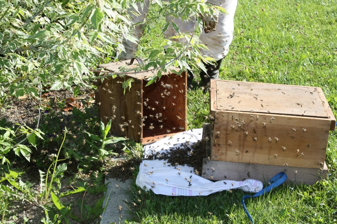 Um einen an einem Baum oder Busch hängenden Bienenschwarm wieder einzufangen, bedienen sich Imker eines Tricks: Sie lokalisieren den Aufenthaltsort der Bienenkönigin in der Bienentraube und stecken diesen Teil der Bienentraube möglichst komplett in einen Sack, der anschließend in eine Bienenkiste entleert wird. Wenn alles klappt, ist die Bienenkönigin nun in der Kiste und die noch im Freien befindlichen Bienen machen sich auf – angelockt von einem Duftstoff – ihrer Königin zu folgen.