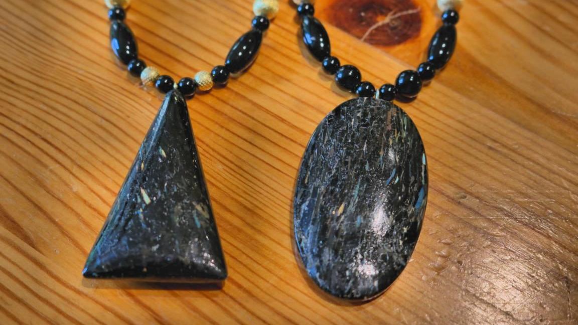 Natürlich verarbeiten die Wierers nicht nur Steine aus der Region, sondern wenden sich auch Besonderheiten zu, die es nur an bestimmten Stellen auf der Welt gibt. So bieten sie beispielsweise Anhänger aus dem seltenen Gestein ›Nuummit‹ an, das aus Grönland kommt. Dieses Gestein war ursprünglich magmatisch und ist sagenhafte 2,8 Milliarden Jahre alt! Wenn man sich vor Augen hält, dass die Erde rund 4,7 Milliarden Jahre alt ist und vor rund 4 Milliarden Jahren sich eine feste Erdkruste herausbildete, kann gesagt werden, dass Nuummit eines der ältesten Gesteine ist, das man finden kann.