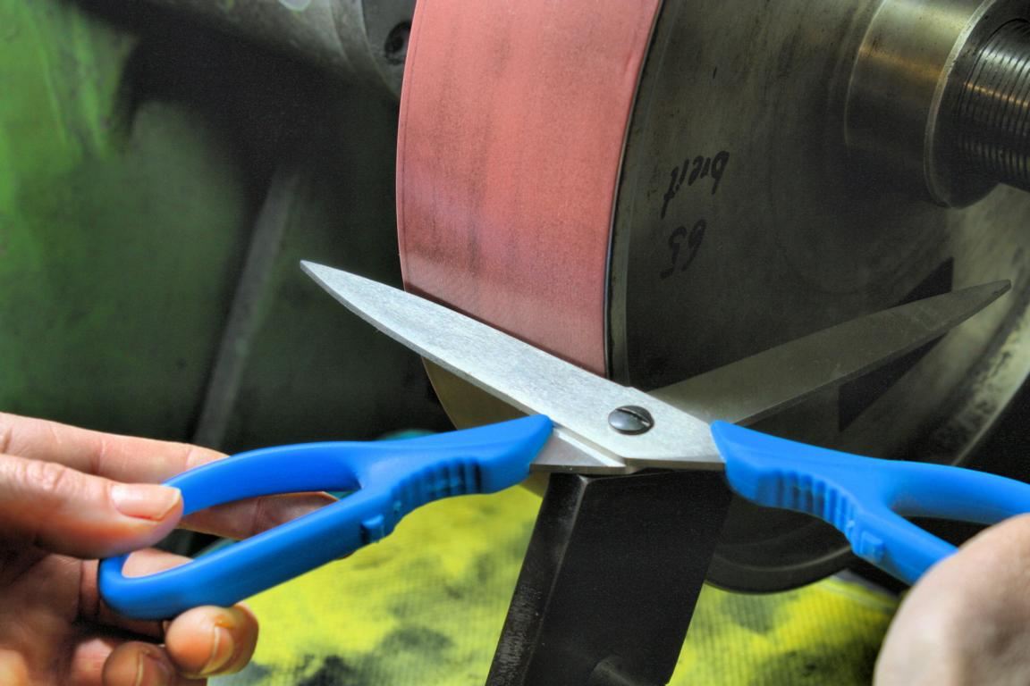 Überhaupt besitzen die Scheren von Scheren Paul einige Merkmale, die sich dem unbedarften Betrachter nicht auf dem ersten Blick offenbaren. Da ist zum Beispiel der Winkel der Schneidkante, der exakt auf den jeweiligen Anwendungsbereich angepasst ist und von Hand eingeschliffen wird. Universalscheren besitzen an der Schneidkante sogar eine Mikroverzahnung, die das Ausschieben des Schnittguts unterbinden. Um die besonders hohe Schärfe bestimmter Scherenmodelle zu erreichen, wird eine mit Büffelleder bespannte Scheibe eingesetzt. Die Oberfläche jeder Schere ist glatt, sauber geschliffen und sorgfältig mattiert oder poliert. Die Spitzen passen in geschlossenem Zustand perfekt zueinander. Trotz der hohen, täglich produzierten Stückzahl wird jede einzelne Schere auf Gang und Schnitt getestet, ehe sie ausgeliefert wird. Qualität wird so im wahrsten Wortsinn seh- und spürbar.
