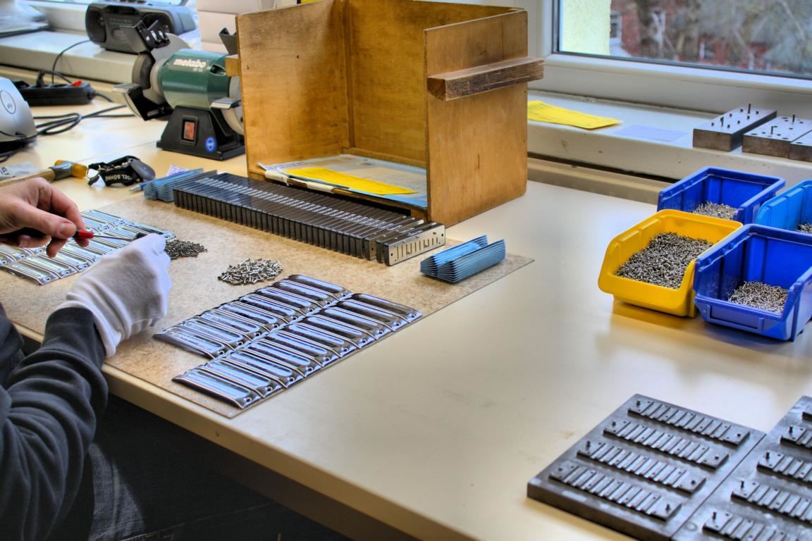 Das Besondere am Bau von Mundharmonikas ist, dass Präzision die oberste Richtschnur zu sein hat, sollen wohlklingende Töne erzeugt werden. Obwohl es unfassbar erscheint, ist es doch wahr, dass das Tausendstell Millimeter darüber entscheidet, ob ein derartiges Musikinstrument gelungen ist oder nicht. Mit dieser Präzision müssen beispielsweise die Stimmzungen gefertigt werden, damit deren Schwingung den erwarteten Ton erzeugt.