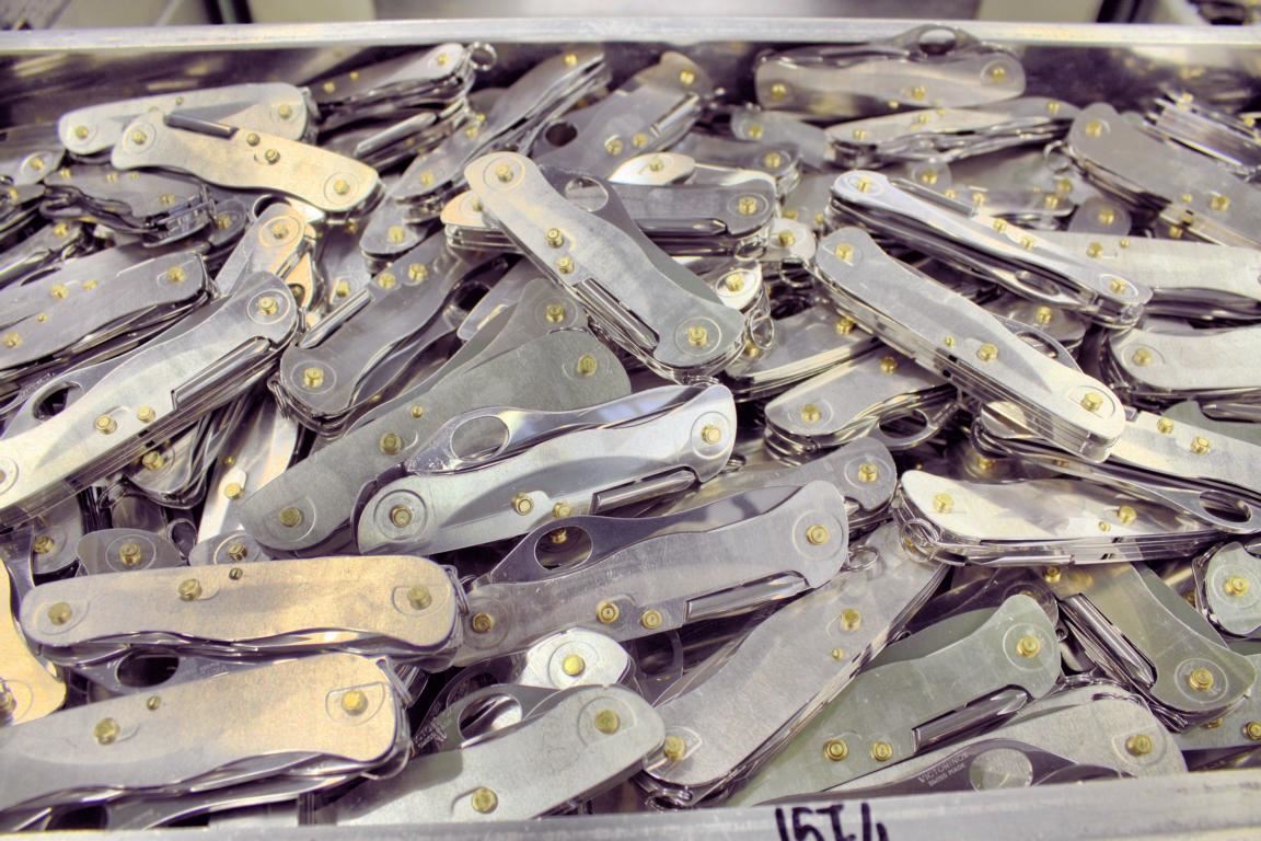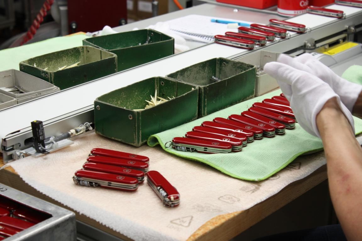 Damit dies Messer für Messer gewährleistet ist, unterhält Victorinox einen eigenen Maschinenbau, wo Experten dafür sorgen, dass auf vollautomatischen Montagemaschinen aus den Einzelteilen Stück für Stück Qualitätsmesser vom Band laufen, die eine lebenslange Garantie auf Material- und Fabrikationsfehler mitbekommen. Die Maschinen sind flexibel nutzbar, sodass je nach Auftragslage unterschiedlich bestückte Messer produzierbar sind. Sogar das knifflige Einfädeln des Anhängerings haben die Spezialisten automatisiert, was alles andere als selbstverständlich ist.