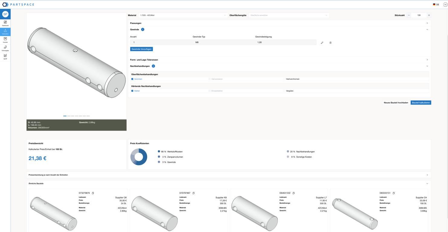 Die daraus resultierenden strukturierten Daten eröffnen vielfältige Anwendungsfelder: vom strategischen Einkauf über das Cost Engineering und Lieferantenbenchmarking bis hin zu Standardisierung und Qualitätssicherung. PartSpace AI kann nicht nur realistische Zielpreise kalkulieren, sondern auch geeignete Lieferanten identifizieren oder Bauteildubletten durch Ähnlichkeitsanalysen aufdecken. So lassen sich Varianten bündeln und Volumeneffekte gezielt nutzen.
