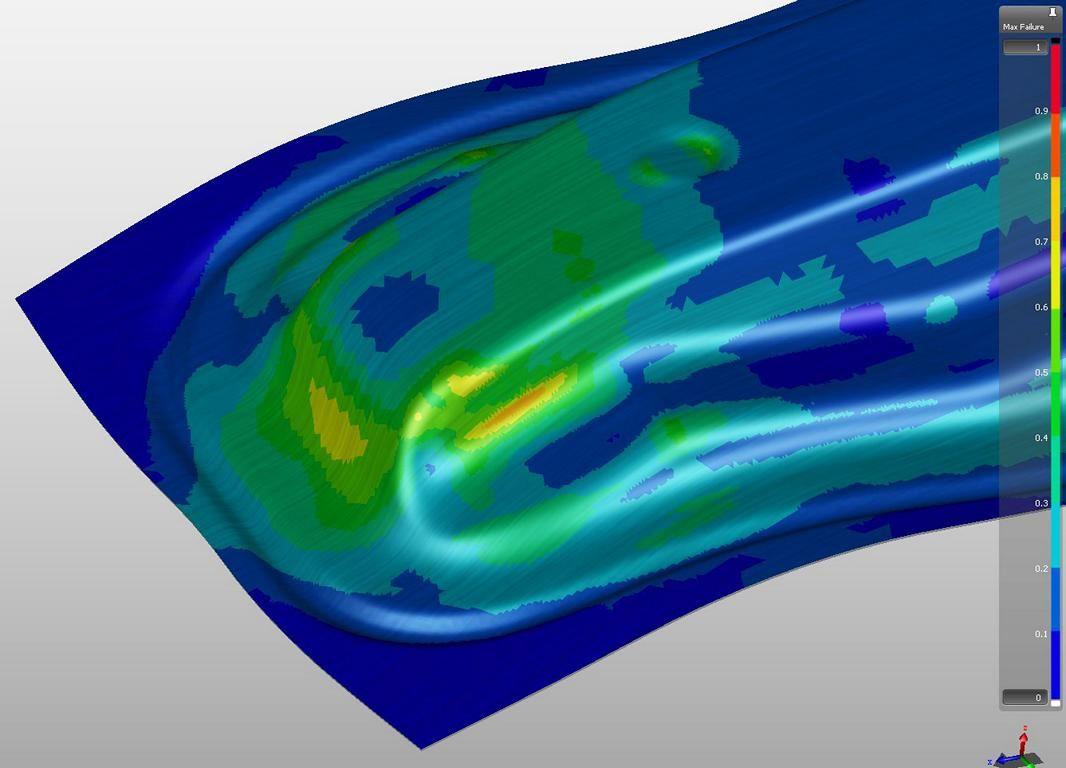 Als Teil der inkrementellen Simulation wird hier mit anderen Eingabeparametern gearbeitet, sodass sich der Kontakt zwischen Blech und Werkzeug exakt abbilden lässt. „In der Simulation werden dafür zunächst die Aufdickungen und Ausdünnungen ermittelt und so angepasst, dass zum Beispiel das aufgedickte Blech genau dazwischen passt“, erläutert Leonard Krauss. „Die Tryout-Mannschaft kann sich je nach Bauteil damit Tage an Arbeit sparen.“