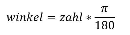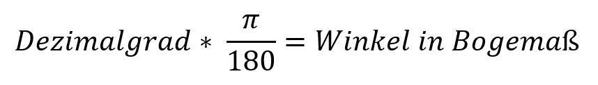 Um einen Winkel, der in Dezimalgrad vorliegt, in Bogenmaß umzurechnen, ist folgende Formel zu nutzen:
