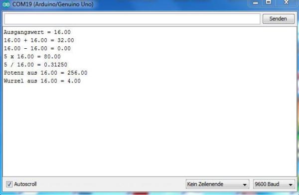Serial.print(zahl); Serial.print(" - "); Serial.print(zahl); Serial.print(" = ");