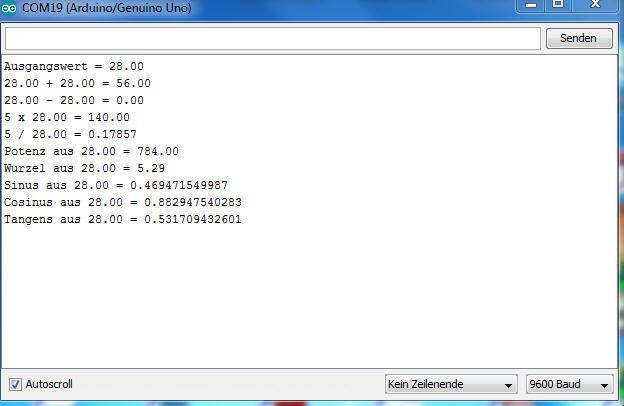 Die vorhandenen mathematischen Funktionen des Arduino sind überschaubar, doch für viele Zwecke völlig ausreichend, ganz abgesehen davon, dass sich bei entsprechenden Mathematikkenntnissen aus dem vorhandenen Fundus nahezu jede andere Rechenfunktion erstellen lässt.