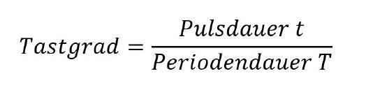 In diesem Zusammenhang ist es wichtig, den Tastgrad korrekt zu bestimmen. Dieser berechnet sich nach nebenstehender Formel.