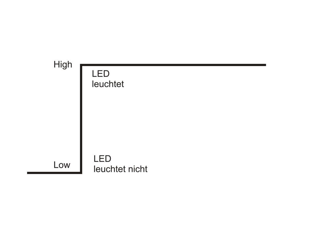 In der Welt der Digitaltechnik gibt es nur die Zustände 0 und 1. Ein Signal ist demnach gesetzt oder eben nicht. Entsprechend ist ein Aktor aktiv oder nicht und eine LED hell oder dunkel. Der Wechsel von 0 auf 1 bedeutet eine sofortige Verfügbarkeit der vollen Leistung, weshalb der Aktor mit voller Kraft ausfährt und die LED mit maximaler Helligkeit leuchtet.