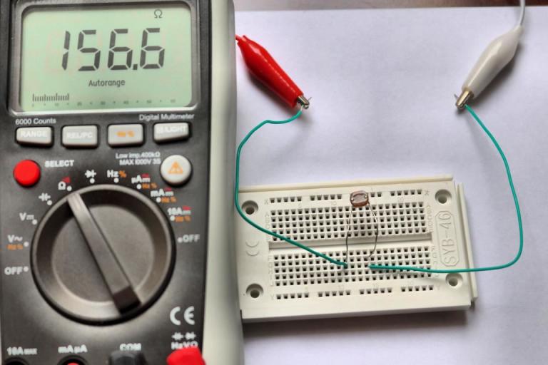 Fotowiderstände haben die praktische Eigenschaft, ihren Widerstand je nach Menge des einfallenden Lichts zu ändern. Dieses Verhalten kann nutzbringend eingesetzt werden. Dazu genügen wenige Bauteile und ein Arduino.