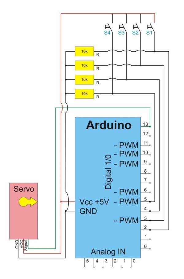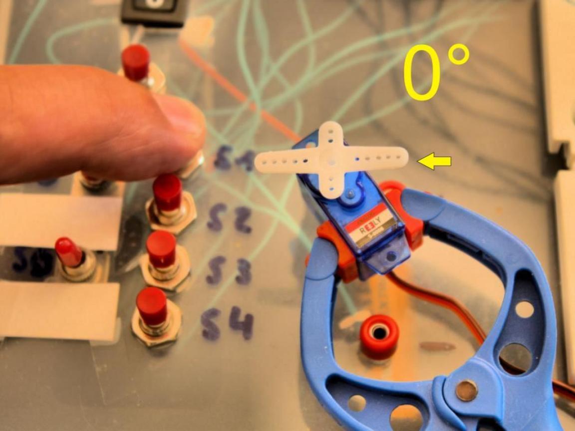 Diese Möglichkeit lässt es natürlich zu, mehrere Taster einzusetzen, um die Achse des Servos rasch in eine bestimmte Position zu lenken.