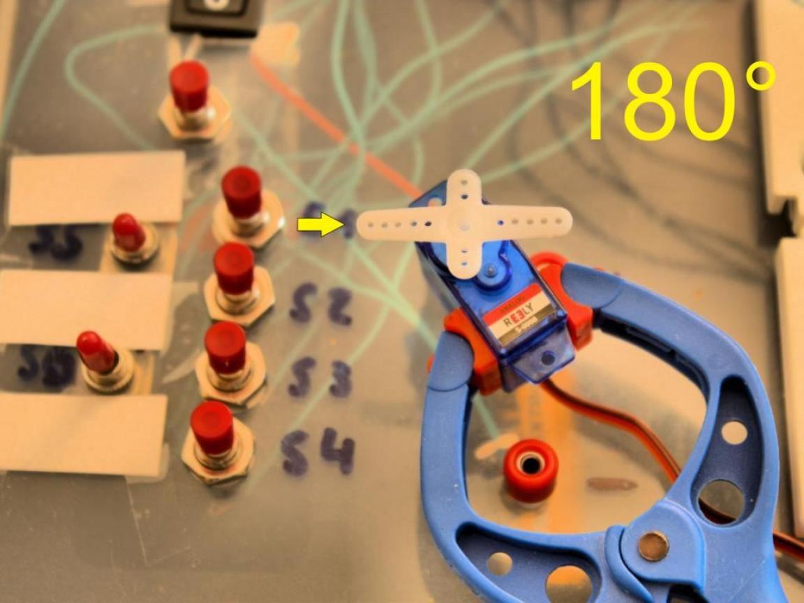 Zu beachten ist, dass durch eine ungünstige Perspektive der Bilder der Eindruck erweckt wird, der Servo würde die gewünschten Winkel nicht exakt anfahren. Dies ist jedoch nicht der Fall.