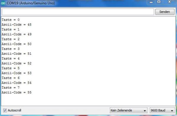 Es ist demnach beim Umgang mit dem Keypad nötig, die Ascii-Tabelle für die dort aufgeführten Zahlenwerte und Symbole zu kennen, um einen korrekten Programmcode erstellen zu können, der in der Lage ist, Eingaben per Keypad korrekt abzuarbeiten.