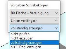 Ist diese Option aktiviert, wird der neue Schiebekörper nicht einfach als zusätzliches Objekt erstellt. Stattdessen berechnet das Programm die Schnittmenge mit einem bereits existierenden Körper. Das bedeutet: Nur der Bereich, in dem sich der neue Schiebekörper und der Zielkörper überlappen, bleibt als neues Volumenmodell erhalten.