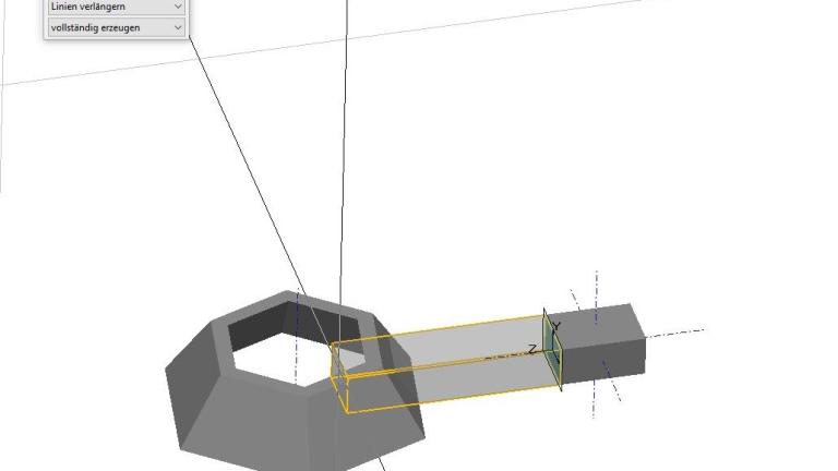 Diese Funktion ist sehr praktisch, um rasch Durchbrüche, Ausklinkungen etc. zu erzeugen. Zu beachten ist, dass die Zielfläche, bis zu der die Extrusion erfolgen soll, exakt definiert wird.