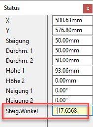 In diesem Fall ist im Eingabefeld „Roll“ des Statusfelds ein Korrekturwinkel von – 90 Grad (Alternativ 270 Grad) einzugeben, damit die Kontur korrekt zur Helix ausgerichtet wird.