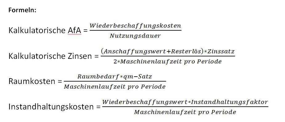 Um den Maschinenstundensatz korrekt berechnen zu können ist die Kenntnis folgender Formeln Voraussetzung: