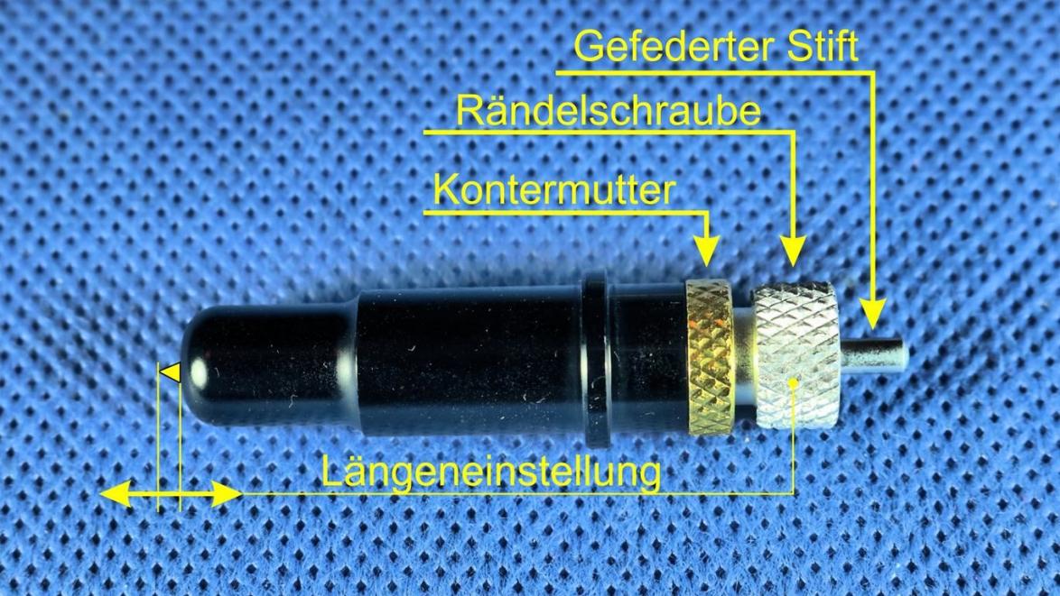 Zur Korrektur des Messervorstands ist die Kontermutter an der Kappe des Messerhalters gegen den Uhrzeigersinn zu lösen. Anschließend die Rändelschraube des Messerhalters hinein oder herausdrehen, sodass das Messer nur minimal herausschaut. Danach die Kontermutter des Messerhalters fest anziehen, damit der Halter fixiert wird und sich nicht bewegt.