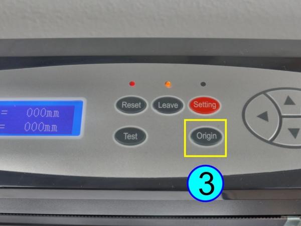 Die Betätigung der Origin-Taste (Nr. 10) setzt an der aktuellen Stelle den neuen Zeichnungs-Nullpunkt. Dies bedeutet, dass von dieser Stelle aus die Zeichnung beginnt.