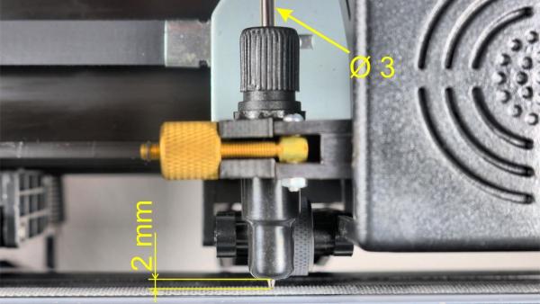Im Lieferumfang des Vevor-Plotters ist ein Adapter für Kugelschreiberminen enthalten, der bereits mit einer Mine bestückt ist. Ersatzminen müssen einen Durchmesser von drei Millimeter besitzen. Bei der Montage ist darauf zu achten, dass die Kugelschreiberspitze zwei Millimeter aus dem Adapter herausragt.