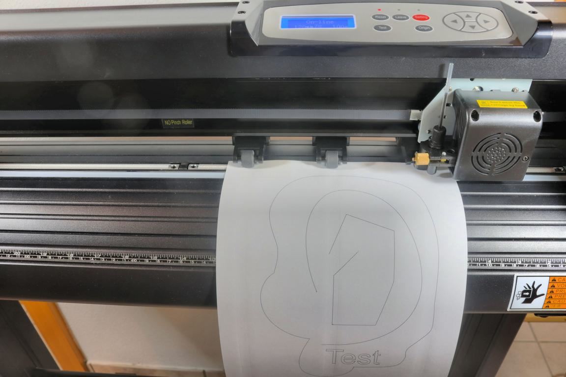 Die Ausgabe einer Zeichnung mittels Kugelschreiber ist eine gute Möglichkeit, vor dem Schneiden einer Folie zu prüfen, ob alle Plotter-Einstellungen passen. Dadurch wird teurer Verschnitt vermieden.