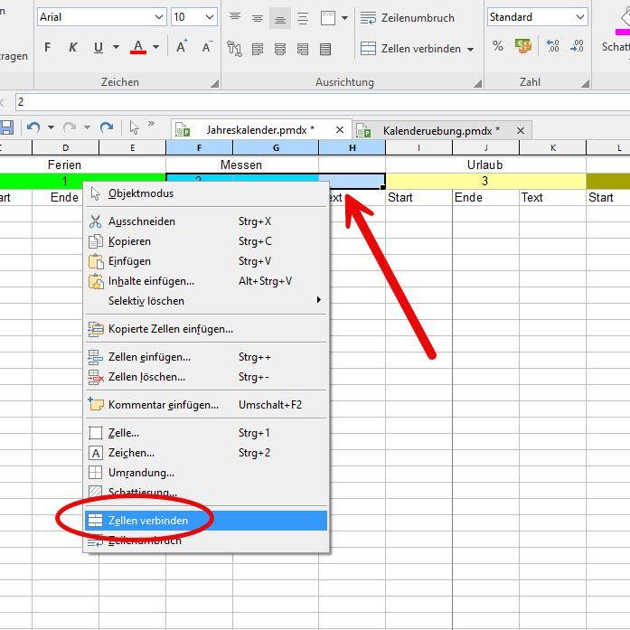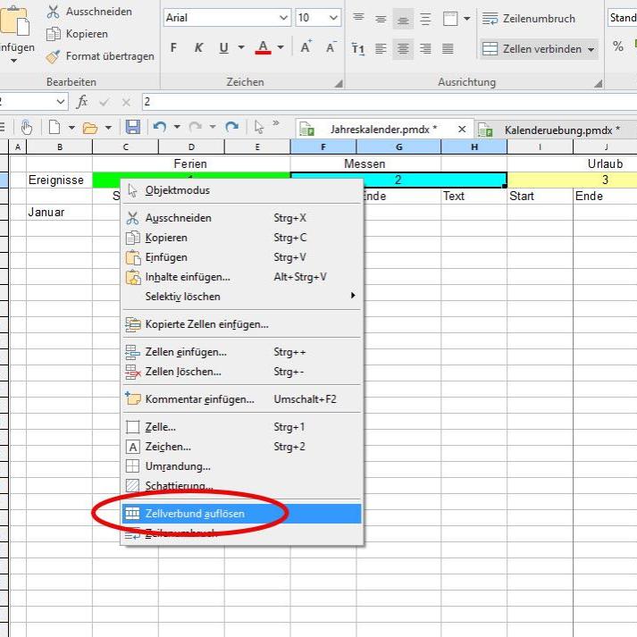 In einem Kalender möchte man den Monat auf einen Blick erfassen und nicht nur eine Zahl präsentiert bekommen. Dies ist problemlos möglich, da in Planmaker auch dafür eine hilfreiche Funktion existiert: =TEXT(DATUM(A4;B4;1);"MMMM").