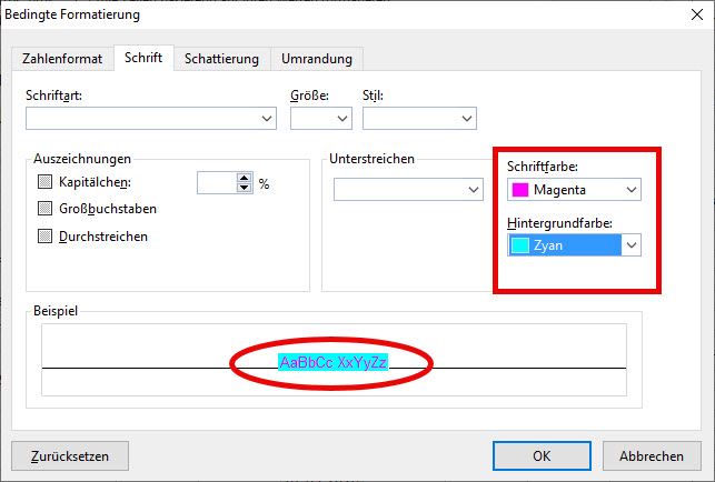 Dabei ist zu beachten, dass die oberste Formel die höchste Priorität besitzt!