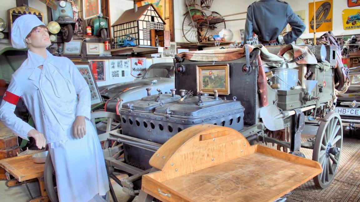Sogar eine BMW Dixi aus dem Jahre 1932 können Besucher hier entdecken. Wenige Schritte weiter bleibt man bewundernd stehen, um den damals von Pferden gezogenen Original-Gullaschkanonenwagen der Schweizer Armee aus dem Jahre 1918 in Augenschein zu nehmen. Ein Stück Geschichte, das es in dem dort präsentierten, hochklassigen Erhaltungszustand deutschlandweit wohl kein zweites Mal gibt.