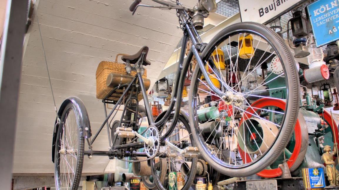 Ohne Übertreibung ist festzustellen, dass es schwer ist, eine zweite, derart große Sammlung seltener Zweiräder in Deutschland zu finden. Hier ist nicht nur das Motorrad ›Imme‹ zu sehen, das vom Ausnahme-Konstrukteur Norbert Riedel entwickelt wurde, sondern auch andere Zweirad-Meilensteine, wie etwa die ›Megola‹ aus den 1920er Jahren. Dieses Motorrad wurde mit einem Fünfzylinder-Umlaufmotor gebaut, der direkt in das Vorderrad eingebaut wurde. Es gab weder Schaltgetriebe noch Kupplung, weshalb dieses Motorrad nach jedem Halt angeschoben werden musste, um den Motor wieder zu starten. Kein Wunder, dass davon nur 2 000 Stück gebaut wurden.