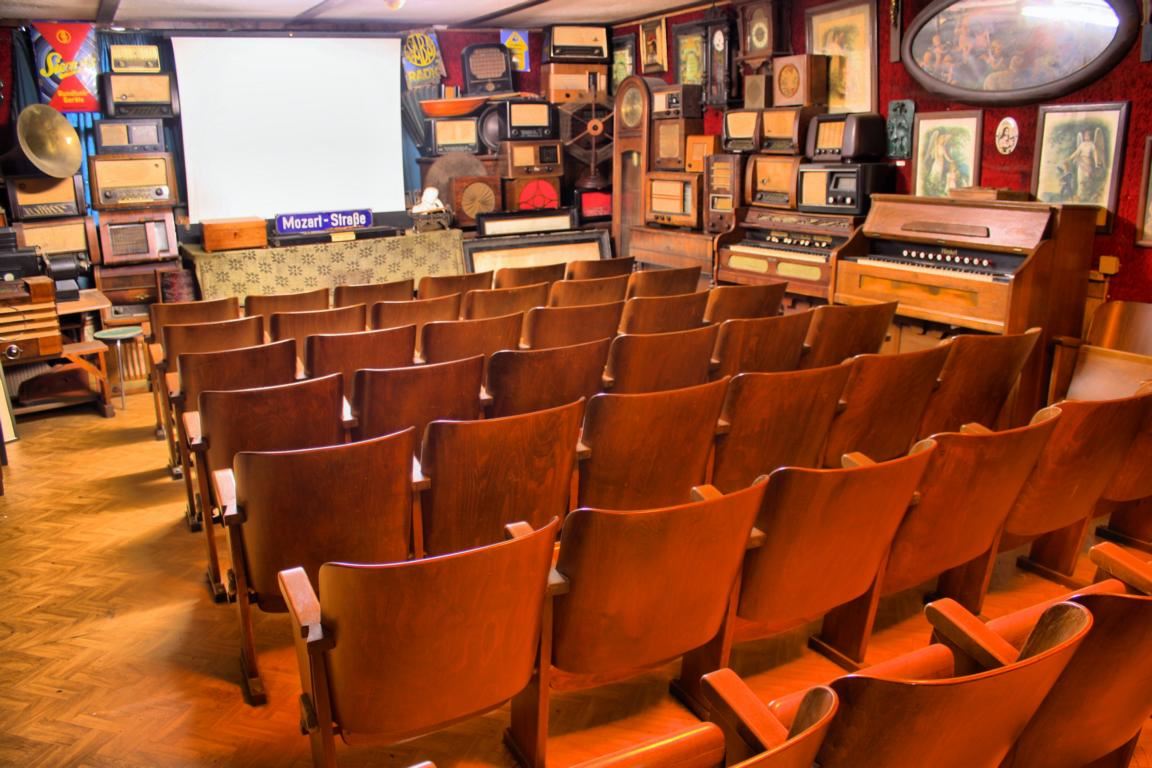 Diese audiophile Rarität ist inmitten ungezählter Radios eingebettet. Der Besucher ist alleine hier gut beschäftigt, die zahlreichen Radios zu würdigen, die in der Zeit vom Beginn des Radiozeitalters bis Ende der 1970er Jahre gebaut wurden. Diese Radios bilden den Rahmen eines Kinos, in dem Filme aus der Zeit des Zelluloids mit einem Original-Projektor gezeigt werden. Eine ideale Gelegenheit, bei lustigen Filmen den Museumsbesuch abzurunden und nochmals Revue passieren zu lassen.