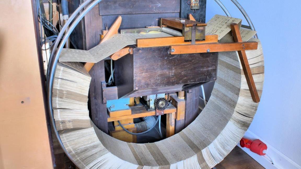 Hier drehte sich eine Walze, deren eingesetzte Stifte durch einen Stahlkamm strichen. Die so in Schwingung versetzten Zungen erzeugten unterschiedlich hohe Töne, was die Komposition ganzer Musikstücke erlaubte.