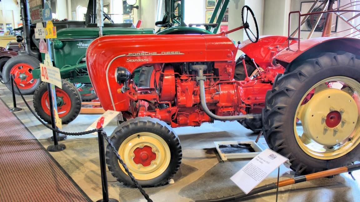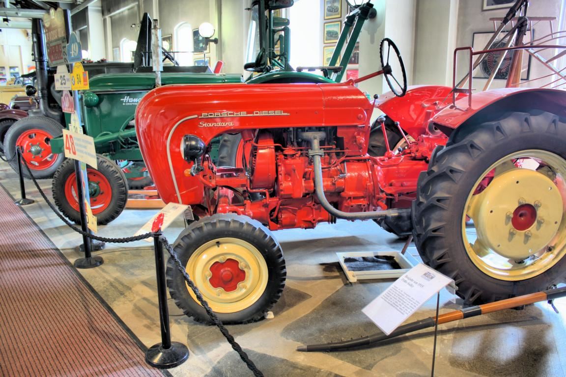 Unvermittelt steht man etwa vor einem Panzermotor für den T-62. Das Schnittmodell erlaubt einen Einblick in diesen gewaltigen Motor, der eine Leistung zwischen 580 und 709 PS entwickelte. Porsche-Fans werden aufhorchen, dass nicht nur zahlreiche Automodelle dieses Herstellers zu besichtigen sind, sondern auch ein Traktor aus dem Jahr 1959, dessen Zweizylinder-Dieselmotor 25 PS entwickelte. Doch war das Porsche-Fahren nicht des Bauern große Lust, weshalb die Traktorenproduktion bereits 1962 wieder eingestellt wurde.