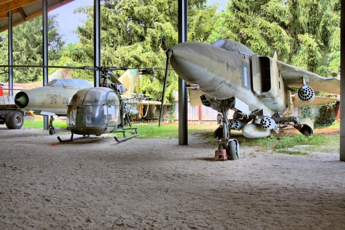 Aufgelöst wurde mit der Wiedervereinigung auch die Nationale Volksarmee der ehemaligen DDR, weshalb die Museumsbetreiber beherzt zugriffen, als sich Anfang der 1990er Jahre die große Chance bot, ausgesprochen günstig an NVA-Kriegsgerät zu kommen, das heute in einem überdachten Freigelände des Museums zu bewundern ist. Ob MIG 23 UB, MIG 21 UM oder SU-22 M Flugzeugfans werden glänzende Augen bekommen, wenn Sie den Stolz sowjetischen Flugzeugbaus in Augenschein nehmen.